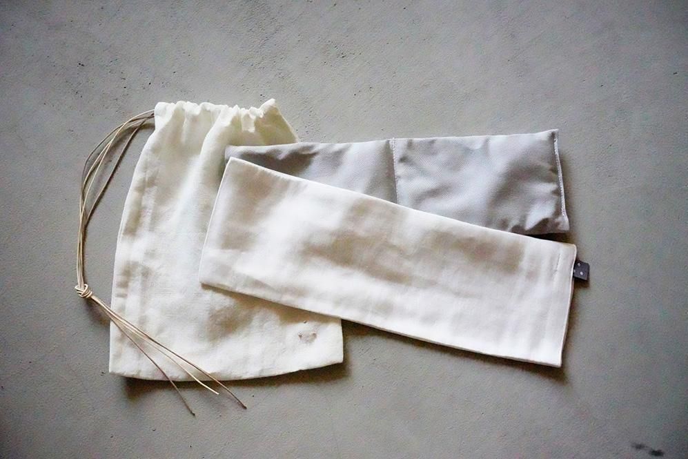 温めパッドと肌触りの心地良い上質なコットンヘンプのカバーのセットを、∴chimugusuiオリジナル巾着に